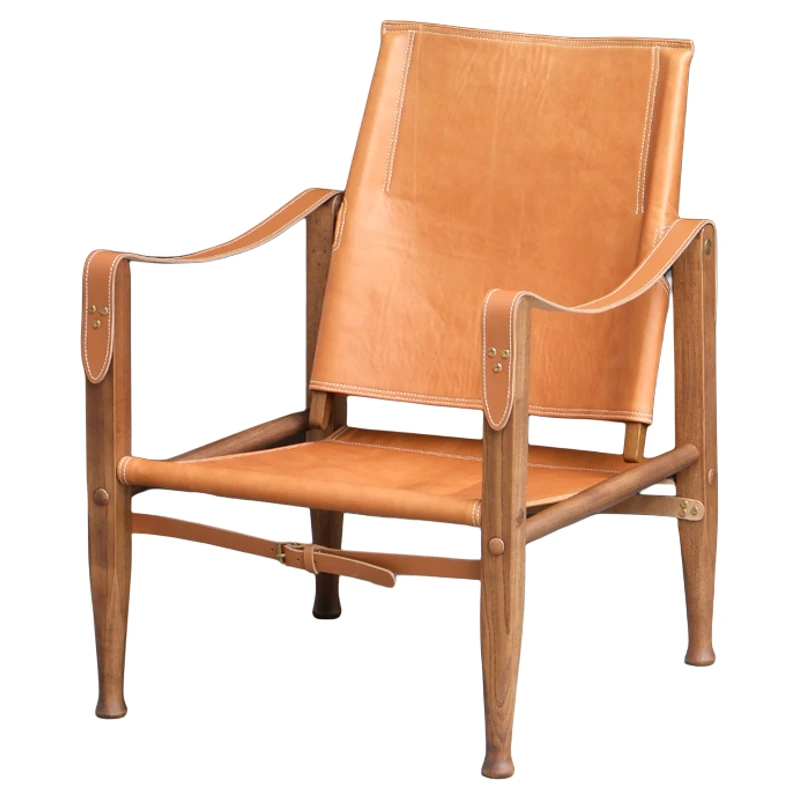 忆朴 レトロ風真皮ハンティングチェア - 究極のリラックス体験!高品質オイルワックスレザーと無垢材使用、優雅なデザインで居心地の良い空間を演出します。あなたのインテリアにぴったりの一脚です。