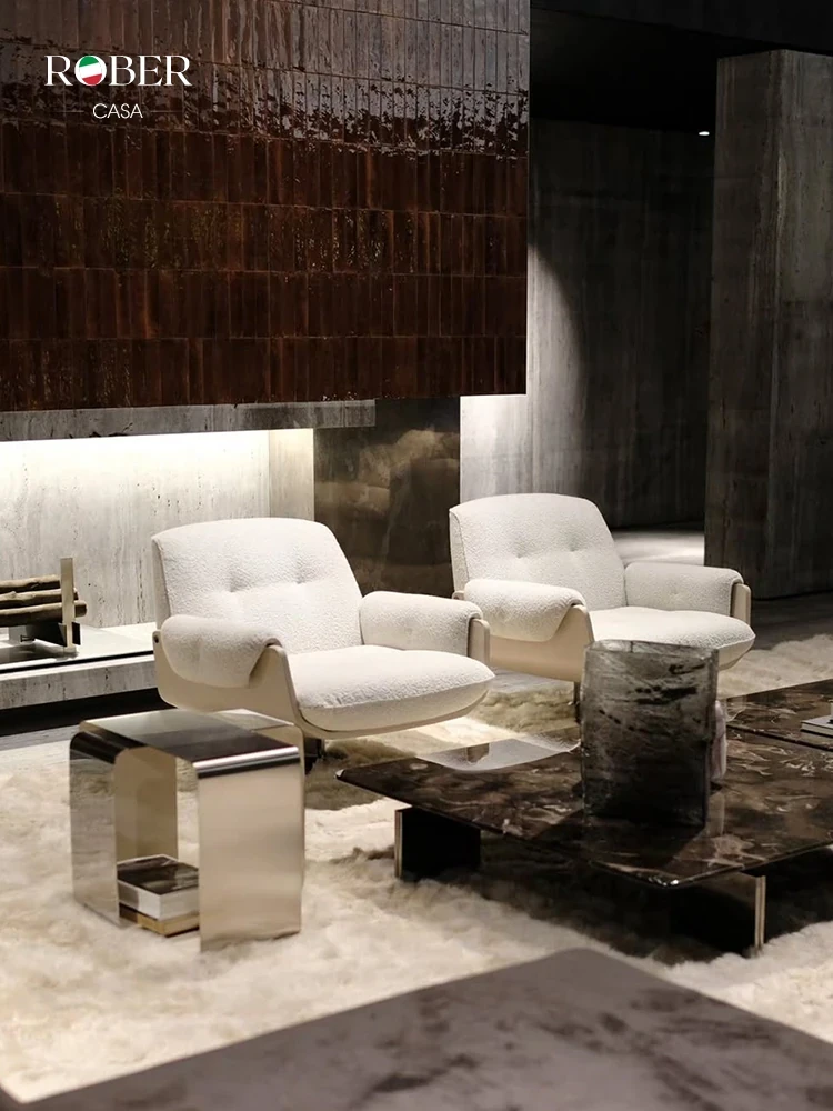 Nordic Modern Minimalist White Lambswool Leisure Sofa & Luxury Export-Quality Swivel Accent Chair - Perfect for Cozy Living Spaces!