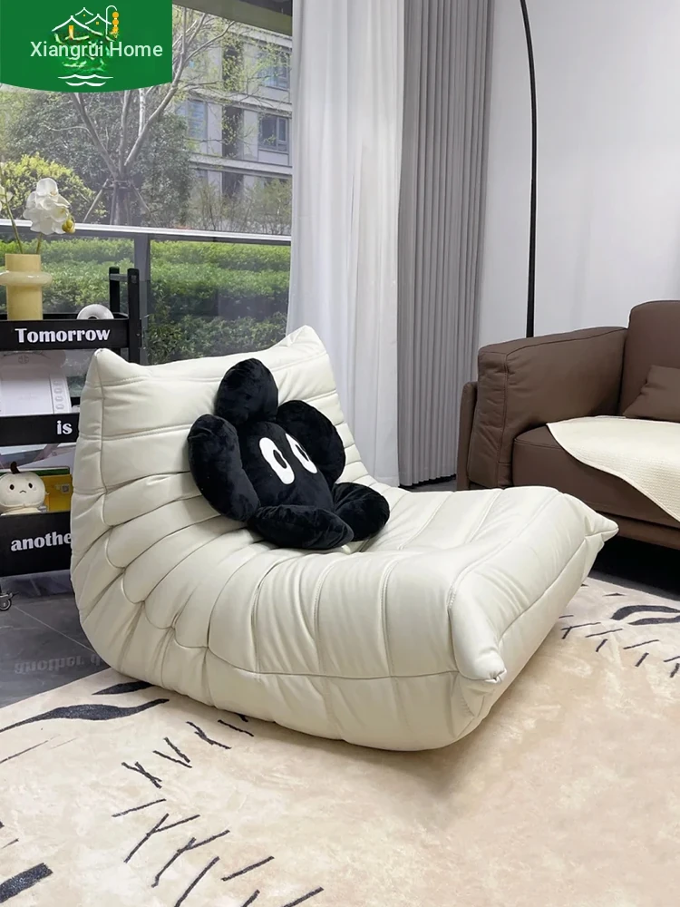 Creamy Single Original Togo Caterpillar Sofa - Perfect for Relaxing in Your Balcony, Bedroom, or Living Room. Versatile Design for Lying Down or Sleeping, Ideal for Lazy Days!