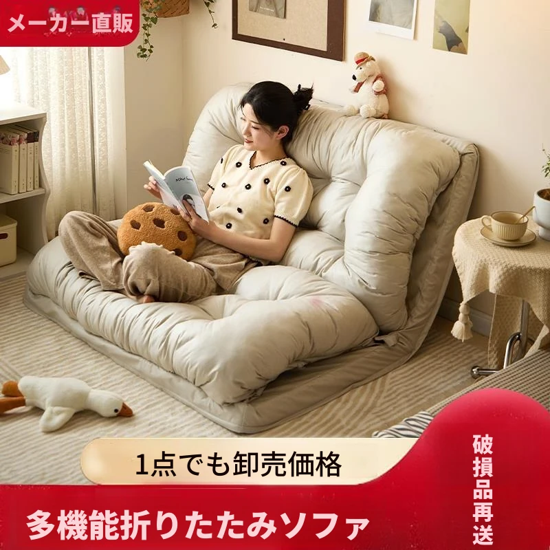 リラックスソファ 兼用寝具 タタミスタイル 小型ソファ 小さな部屋に最適 折りたたみソファベッド シンプルでおしゃれなリビングに!あなたのくつろぎタイムをさらに快適に!