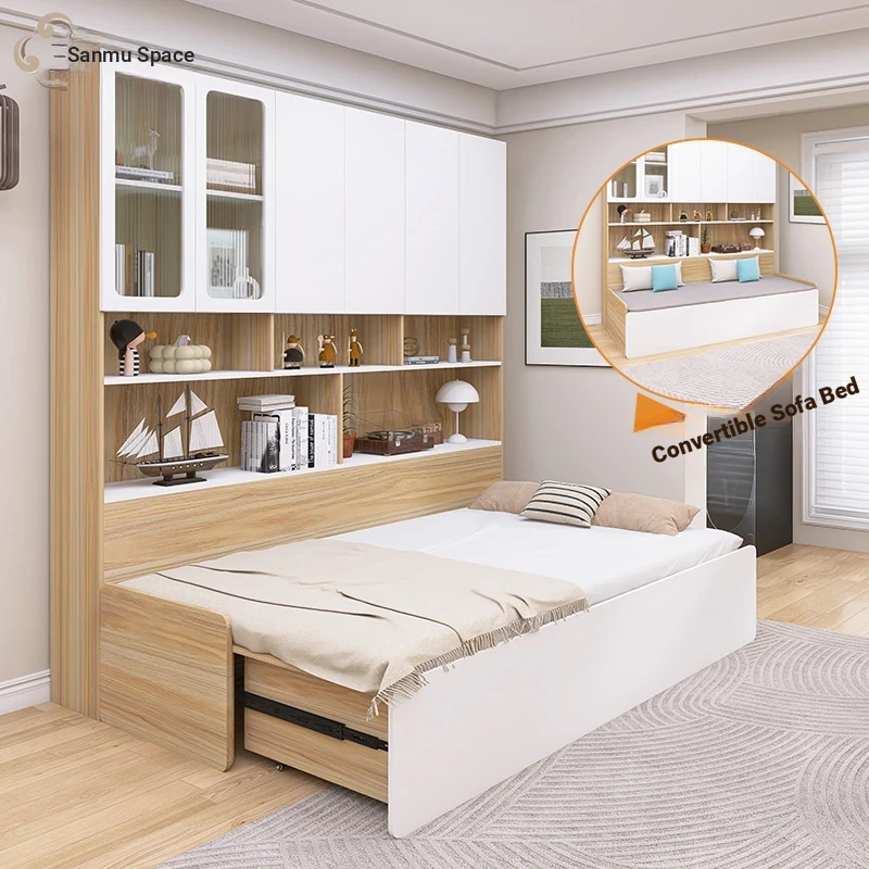 Versatile 2-in-1 Folding Sofa Bed and Storage Cabinet for Small Living Rooms - Space-Saving Dual-Purpose Furniture with Bookshelf and Storage Solutions. Perfect for Compact Spaces!