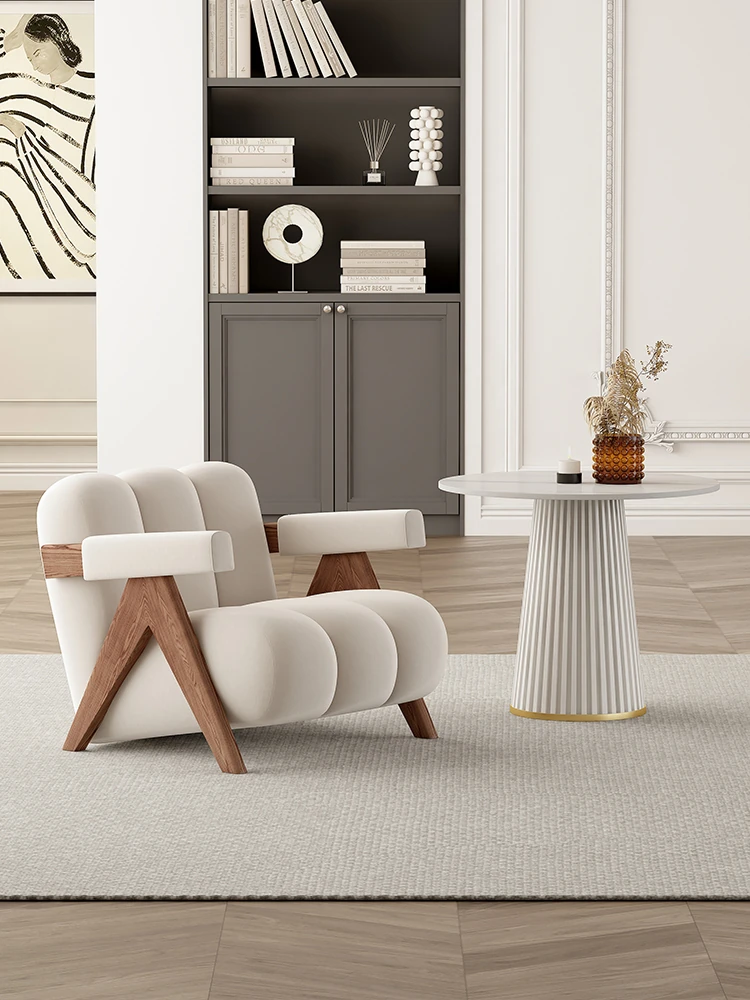 Stylish Modern Leisure Single Sofa Chair - Perfect for Living Rooms and Hotels, Featuring Trendy Minimalist Design and a Chic Coffee Table Set