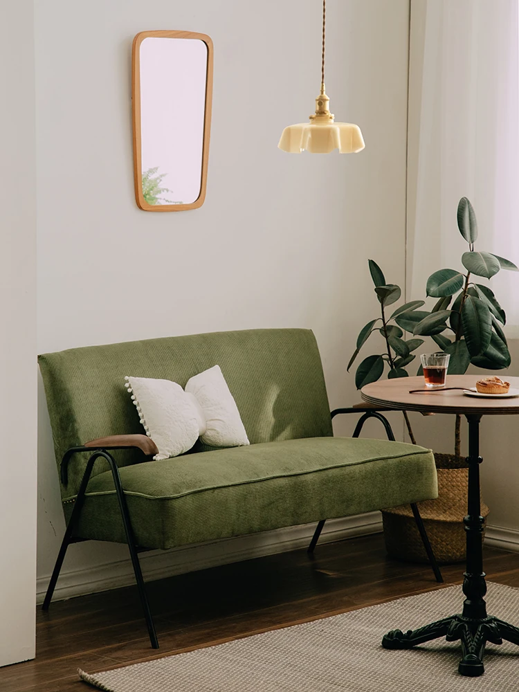 Vintage-Inspired Double Seat Sofa Chair - Nordic Japanese Corduroy with Iron Frame, Perfect for Cafés and Relaxation Spaces - A Touch of Retro Charm in Your Home Decor