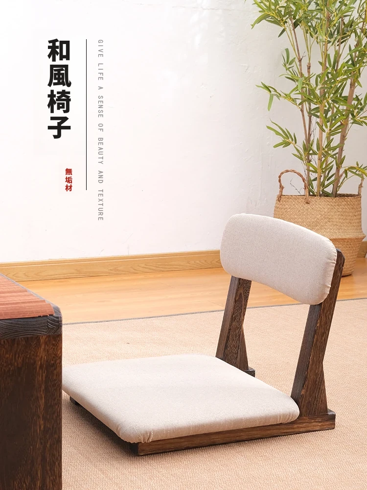 国産の天然木製!和風デザインの窓辺用畳椅子 - 寝室や寮に最適な背もたれ付きの脚なしリラックスチェア。快適な座り心地とスタイリッシュな外観で、あなたのスペースを彩ります!